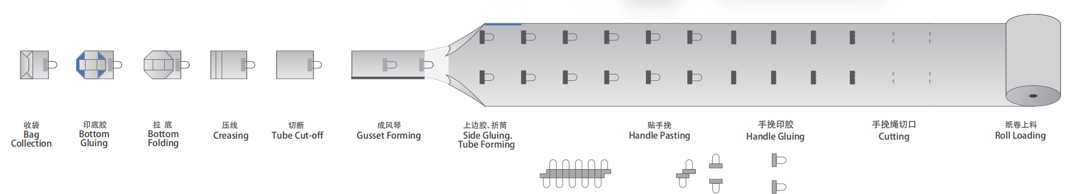 本設(shè)備采用卷筒進(jìn)料方式,主要用于生產(chǎn)環(huán)保手提袋和無(wú)手挽的環(huán)保紙袋。 本設(shè)備技術(shù)與國(guó)際同步,采用伺服驅(qū)動(dòng)控制,具有智能化程度高、生產(chǎn)效率高、成品合格率高等特點(diǎn),適合環(huán)境食品包裝袋大規(guī)模生產(chǎn),也適應(yīng)多品種小批量的生產(chǎn)模式,滿足不同規(guī)格和不同訂單數(shù)量的紙袋生產(chǎn),是一款非常理想的卷筒環(huán)保袋紙袋機(jī)。
